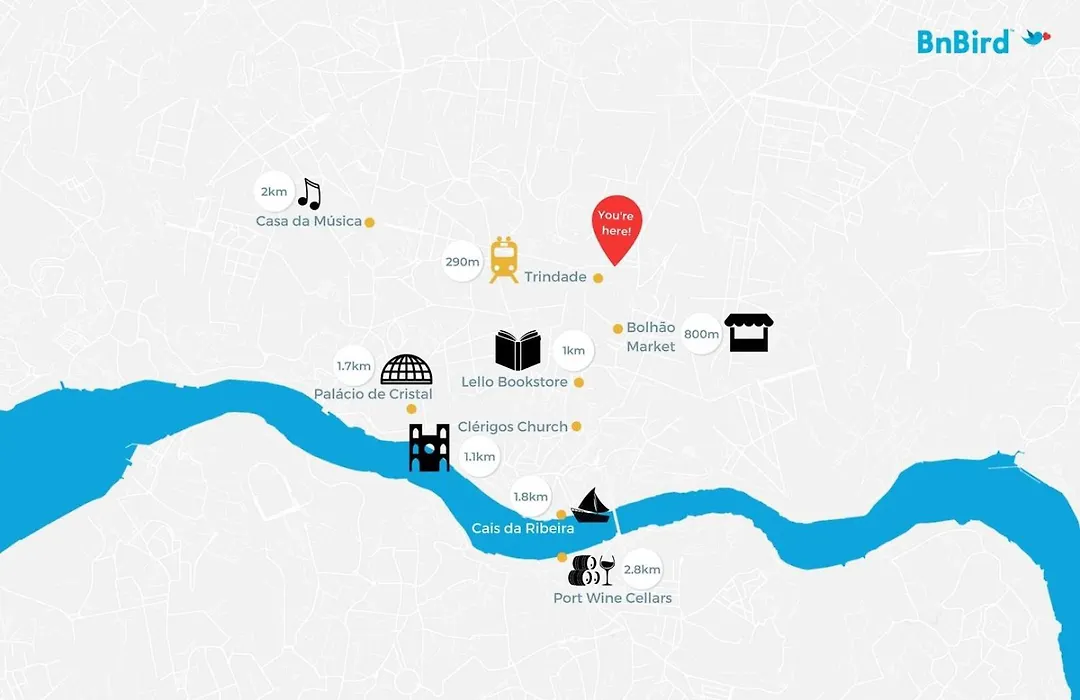 Перебуваючи в центрі Порту, ви також можете влаштувати пікнік на Fonte das Oliveiras, що знаходиться в межах 9 хвилин пішої прогулянки від апартаментів. До центру Порту можна дійти пішки за 10 хв. На відстані 1.8 км від Апартаменти Trindade Flat With A Great View знаходиться Винні погреби Сандеман.